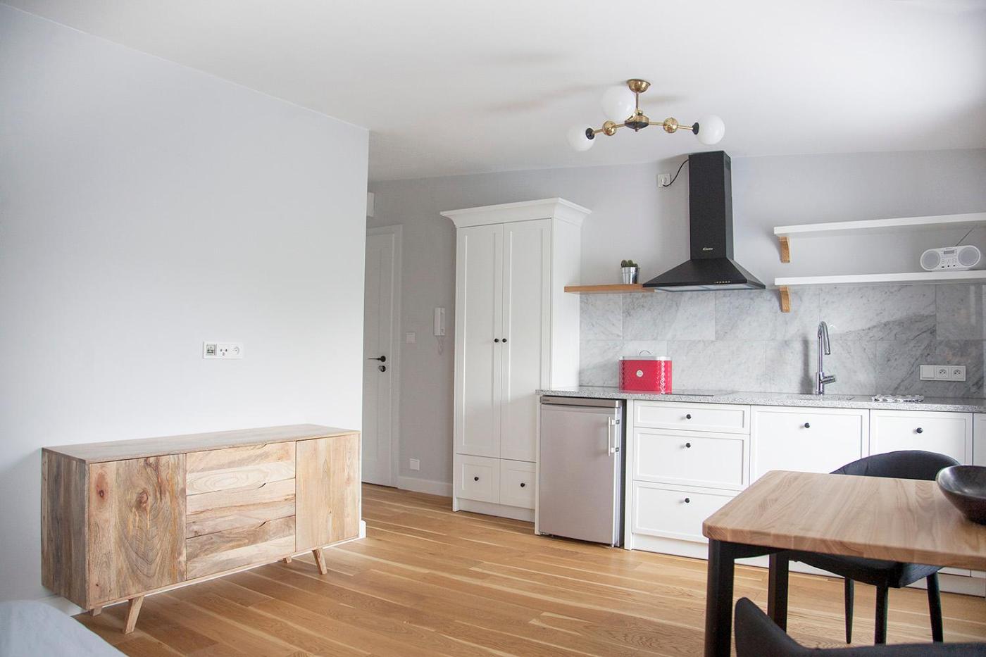 Apartament typu studio. Featuring a private entrance, this apartment is comprised of a kitchen, 1 bedroom and 1 bathroom with a shower and a hairdryer. The well-equipped kitchen features a stovetop, a refrigerator, a dishwasher and kitchenware. The apartment offers a washing machine, a tea and coffee maker, a wardrobe, tumble dryer, as well as a flat-screen TV. The unit offers 1 bed. Apartament - 2 osobowy. Powierzchnia pokoju ok.: 25 mkw.